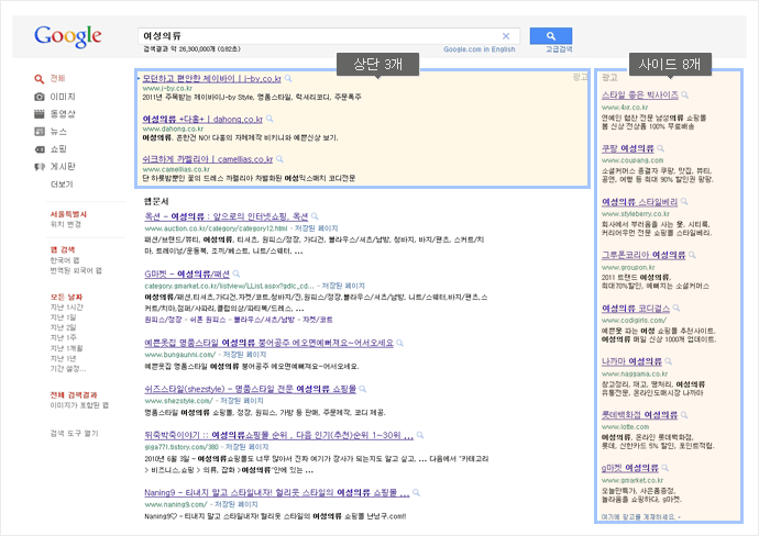 ³ëÃâÀ§Ä¡ : ±¸±Û ¹× ÆÄÆ®³Ê»ç¿¡ °Ë»ö °á°ú µ¿½Ã¿¡ ³ëÃâ (±¸±Û ³»¿¡¼­´Â »ó´Ü 3°³ »çÀ̵å 8°³ ³ëÃâ)