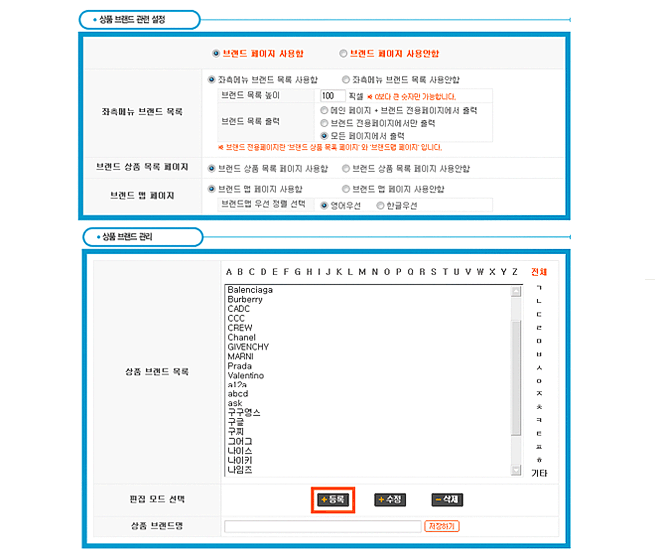 ºê·£µå µî·Ï ¹× ¼³Á¤ ¸Þ´º