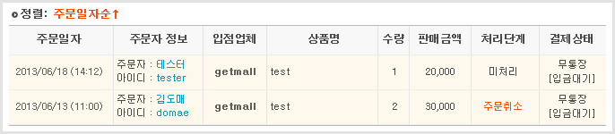 - ÁÖ¹®ÀÚ/¾ÆÀ̵ð : Ŭ¸¯½Ã ¼±ÅÃÇÑ È¸¿øÀÇ ÁÖ¹® ¸®½ºÆ®°¡ Ãâ·ÂµË´Ï´Ù.