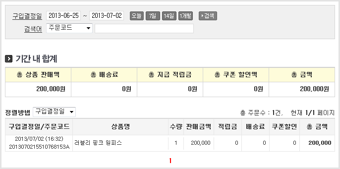 - ±¸ÀÔ°áÁ¤ÀÏ/ÁÖ¹®ÄÚµå Ŭ¸¯½Ã ÇØ´ç ÁÖ¹®°Ç¿¡ ´ëÇÑ »ó¼¼Á¤º¸¸¦ È®ÀÎÇÒ ¼ö ÀÖ½À´Ï´Ù.