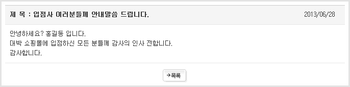 • º»»ç ¼îÇθô °ü¸®ÀÚ°¡ [ÀÔÁ¡°ü¸® °øÁö»çÇ×] °Ô½ÃÆÇ¿¡ µî·ÏÇÑ °Ô½Ã¹°À» È®ÀÎÇÒ ¼ö ÀÖ½À´Ï´Ù.